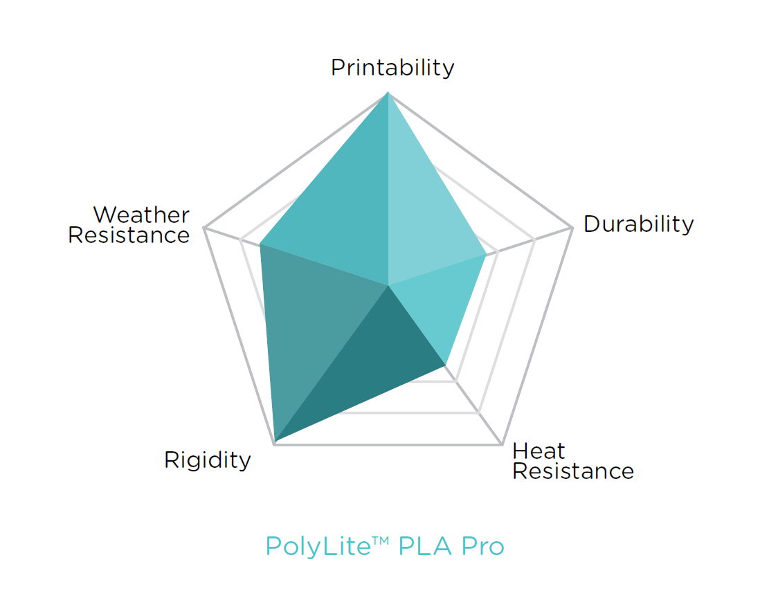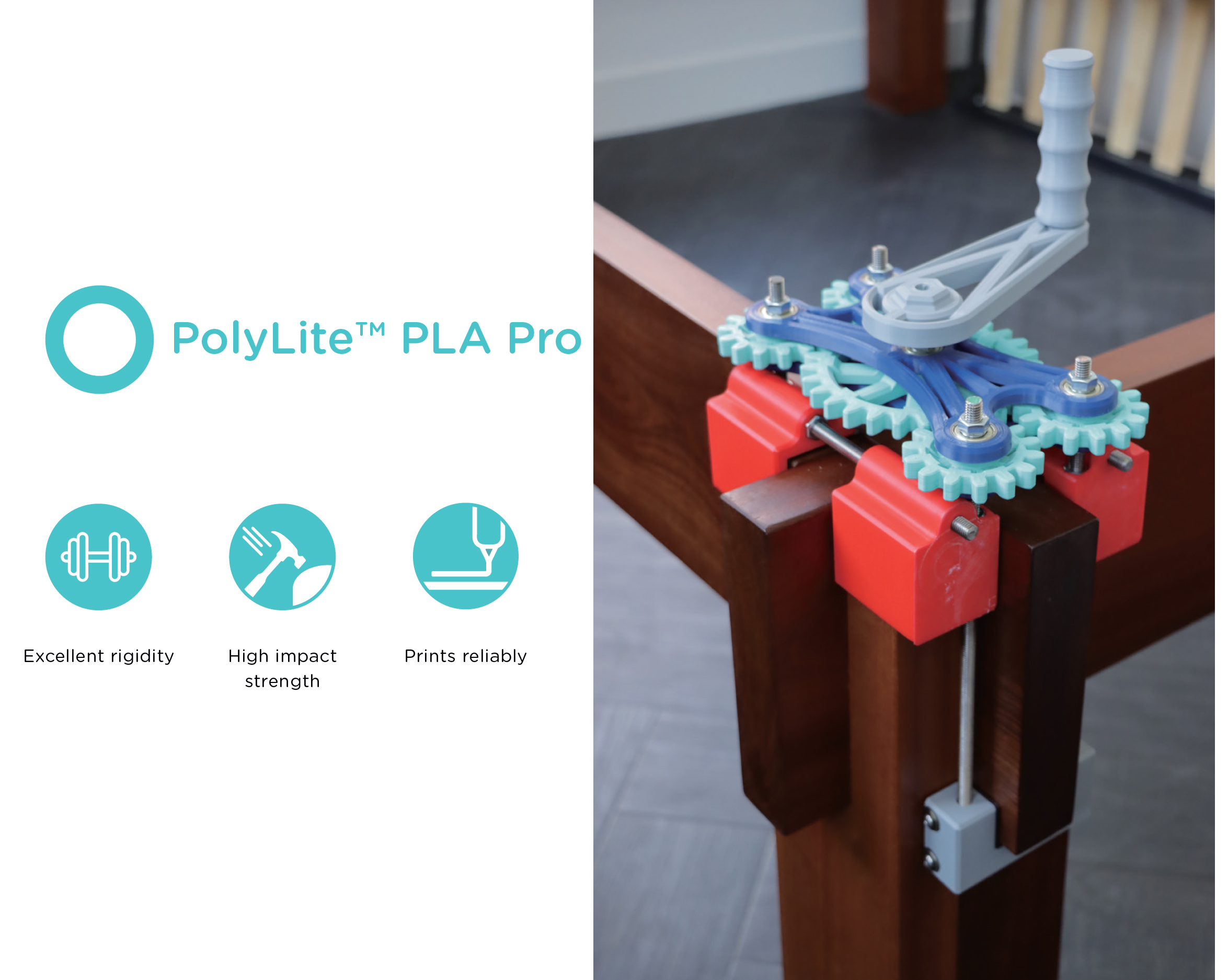 PolyLite™ PLA Pro is a first of its kind, combining high toughness and high rigidity, this professional PLA offers engineering properties without compromising the ease of printing of regular PLA. PLA PRO is the perfect candidate for a wide range of applications covering functional prototyping, jigs and fixtures and end use parts for consumer goods.