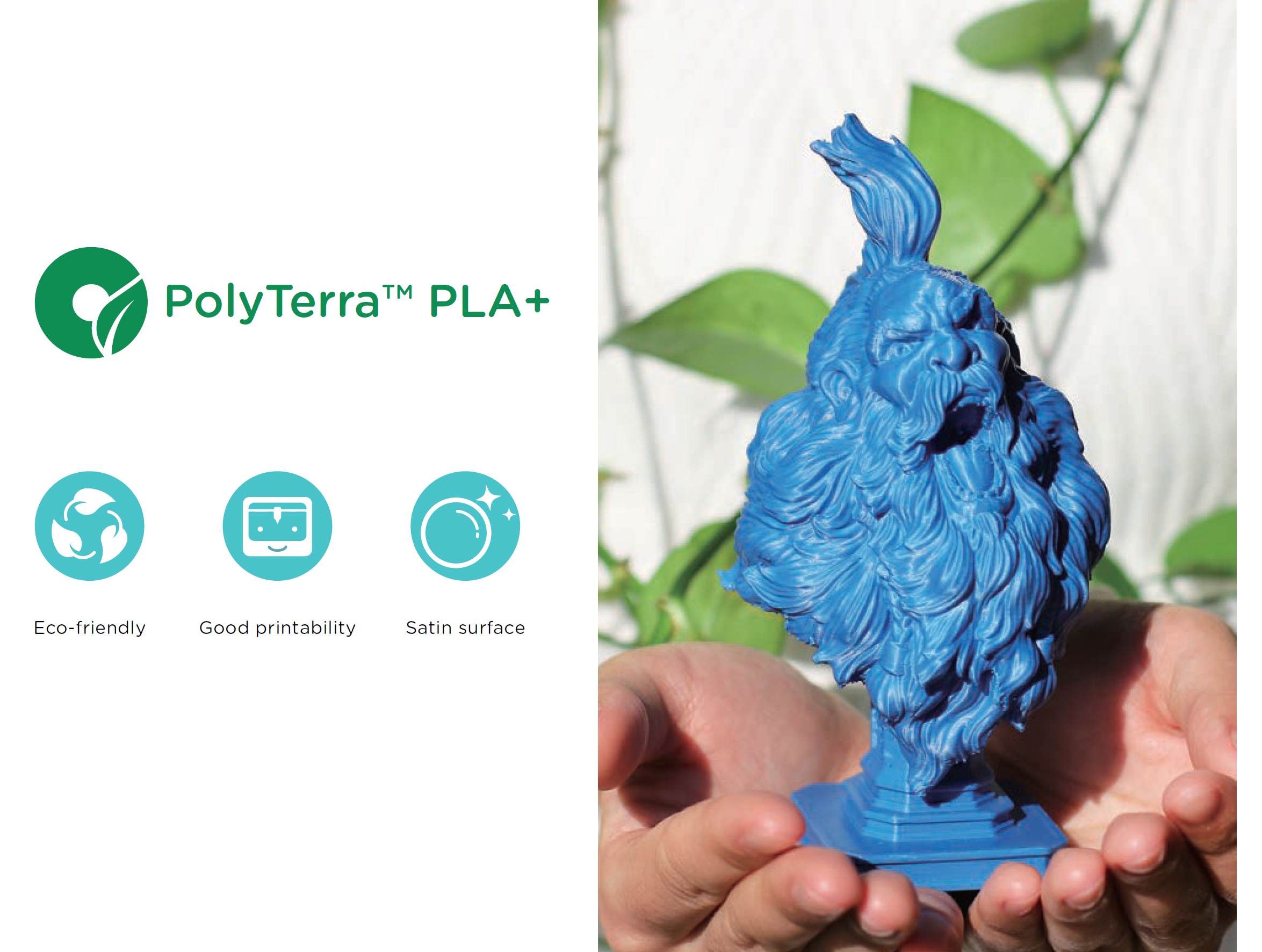 PolyTerra™ PLA + is an impact modified PLA boosting the toughness and durability of PolyTerra™ PLA without compromising the excellent printability. Displaying a more satin finish, this low warp, high precision PLA can be used in more practical applications where a higher rigidity is required.